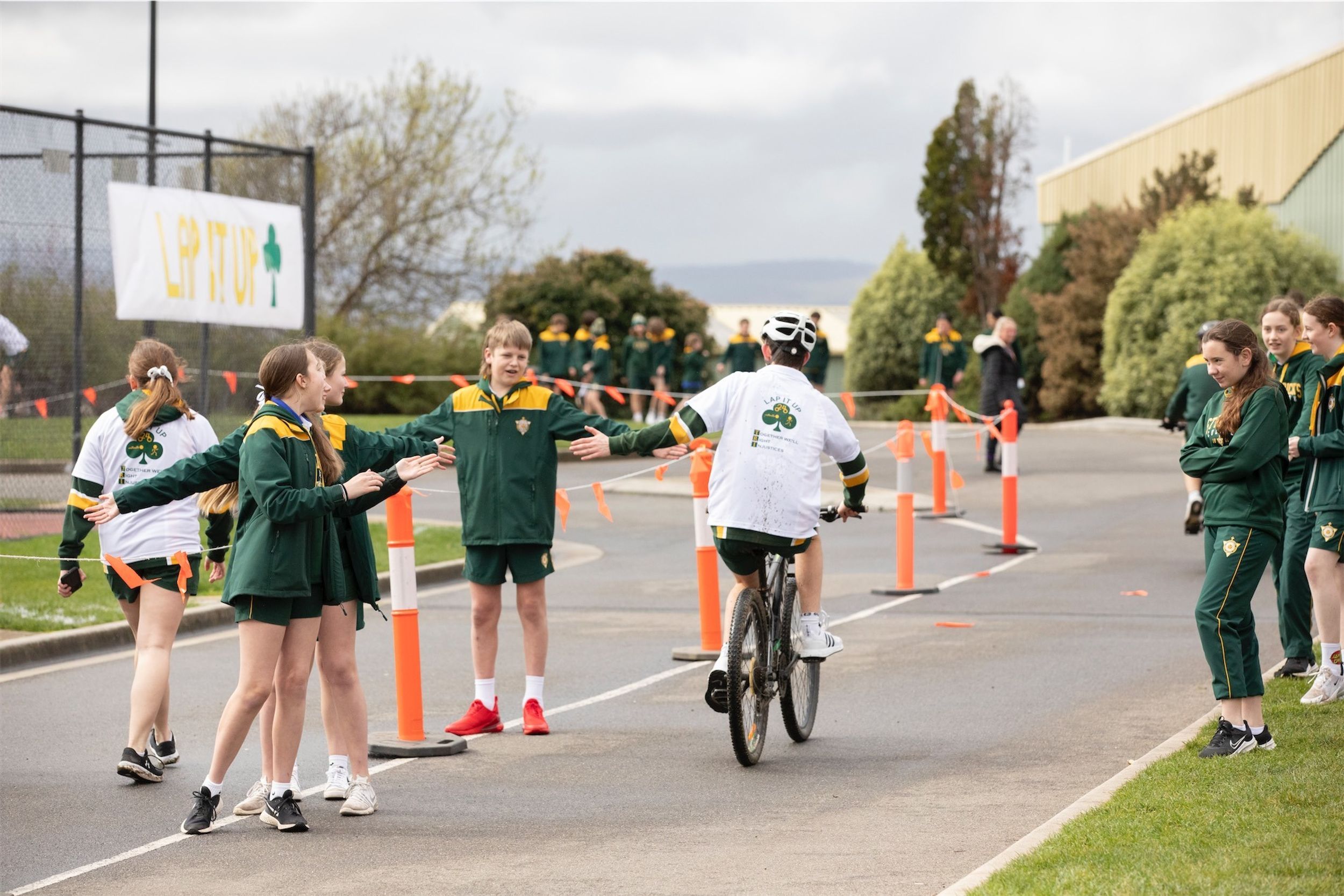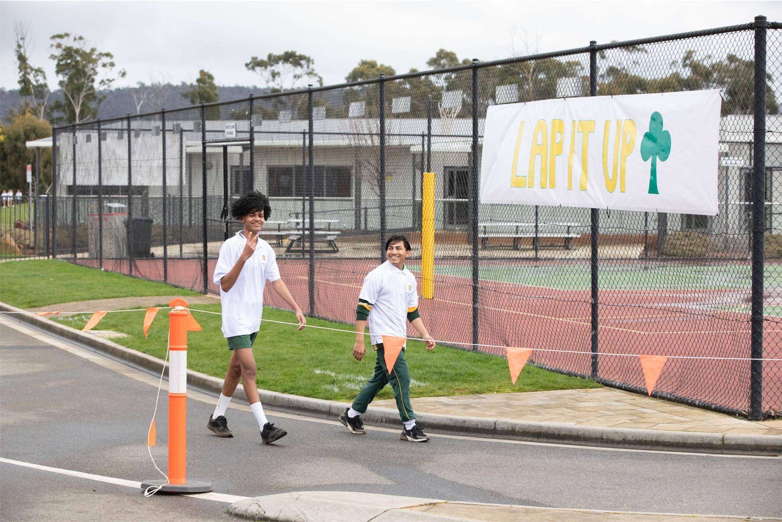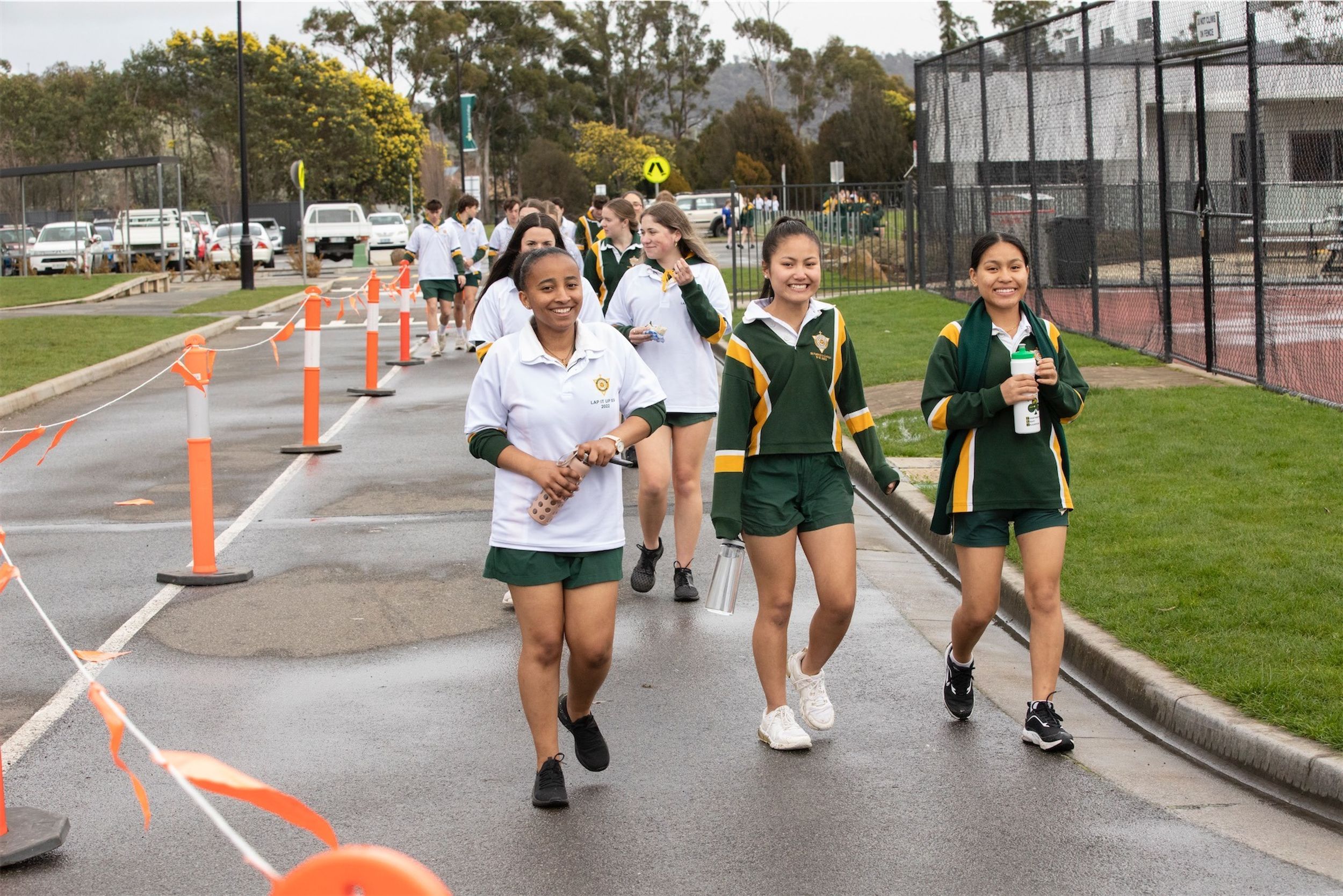 For the past 24 hours, our Year 12 students have been running, cycling and swimming in the annual Lap It Up fundraiser. The weather yesterday was not kind to the participants with rain falling (sometimes quite heavily) from earlier yesterday as well as the early hours of the final day. However, this did not deter the students and staff from participating. Friday morning broke to clear skies and a chill in the air. Although freezing cold, all the students arrived at 8:00am for the all-hour walk to wrap up the 24 hours.