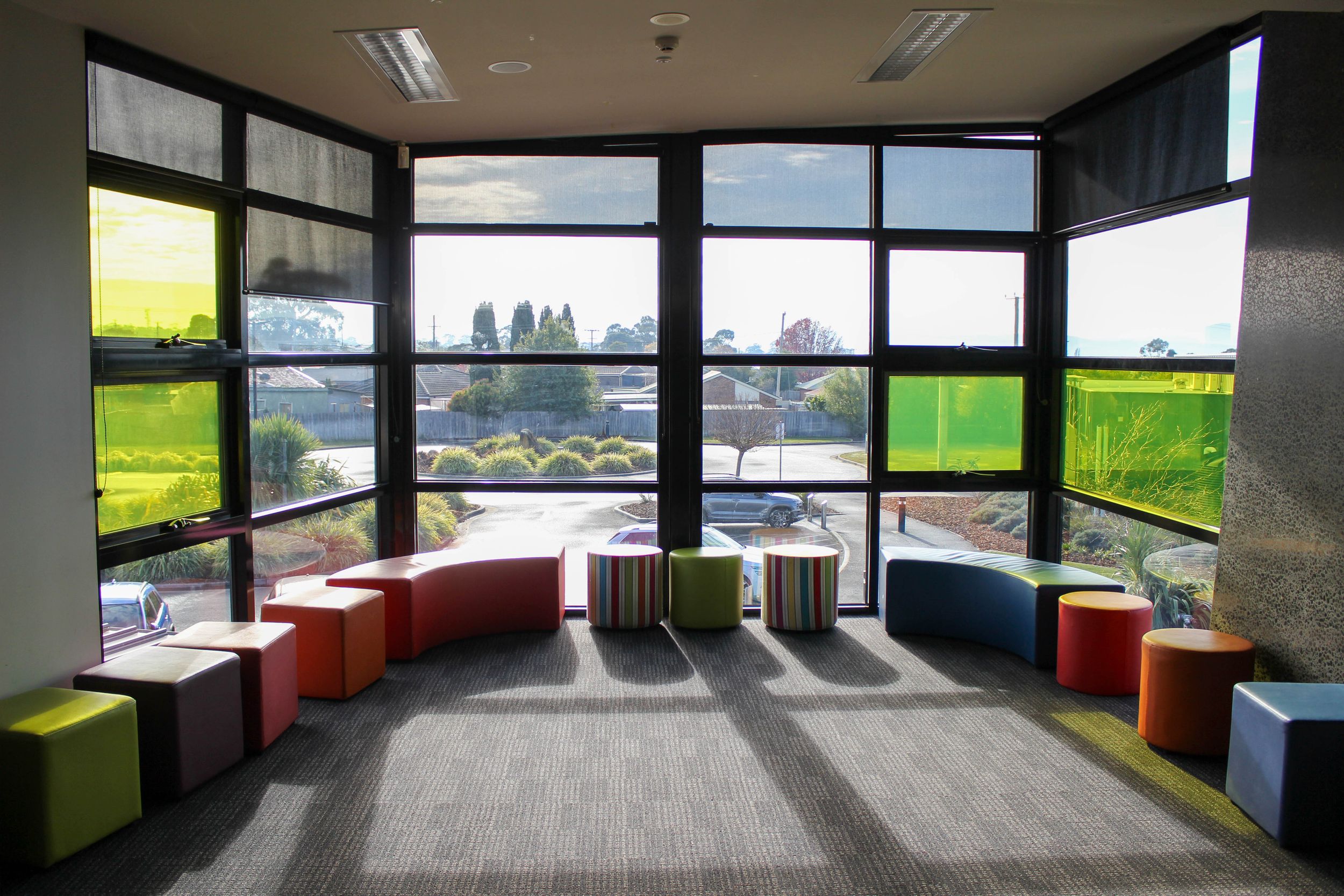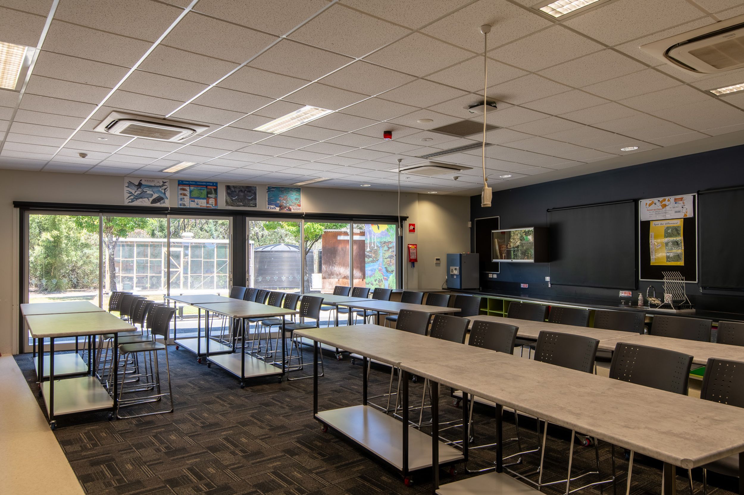 The learning environment is enhanced by flexible breakout spaces located throughout the building. These areas provide students with room to work independently, facilitate small group discussions, or engage in self-directed study away from the main classroom setting.